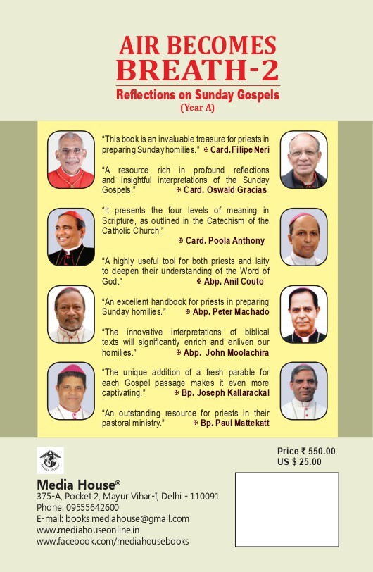 Air Becomes Breath 2: Reflections on Sunday Gospels Year A, is a collection of reflections on Sunday Gospels. The reflections are structured into three parts: Context, Theme, and Insights for Life. These reflections were initially published in the magazines Karunikan and Smart Companion. The book is dedicated to the readers who have supported the author’s writing. The book is being published by Media House Books.